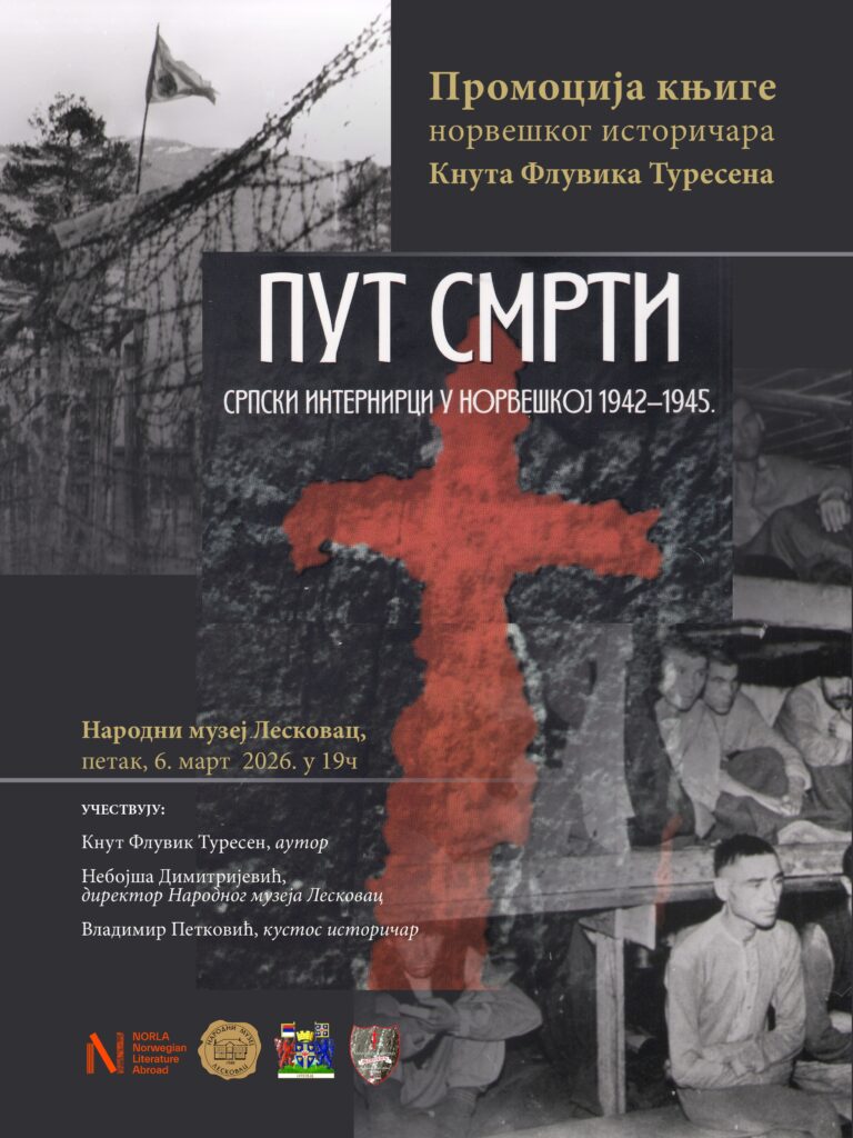 Narodni muzej Leskovac vas poziva na promociju knjige „Put smrti“ (De døde på Blodveien, Serbiske fanger i Norge 1942–45) norveškog autora Knut Flovik Toresen, koja će biti održana u petak, 6. marta, u 19 časova, u holu Narodnog muzeja Leskovac.